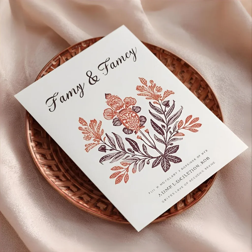 - Color palette – Matching the wedding theme with the invitation hues.
